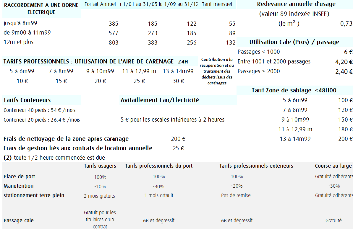 Retrouvez les tarifs de séjours, de manutention, d’électricité et de l’ensemble des services disponibles à Port-la-Forêt.